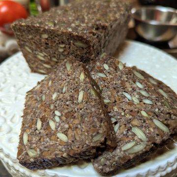 This hearty and delicious seed loaf is loaded with fiber, protein, and healthy fats. It's gluten-free, grain-free, paleo, and vegan, with just 3g of carbs per slice and an average of 14 slices per loaf.